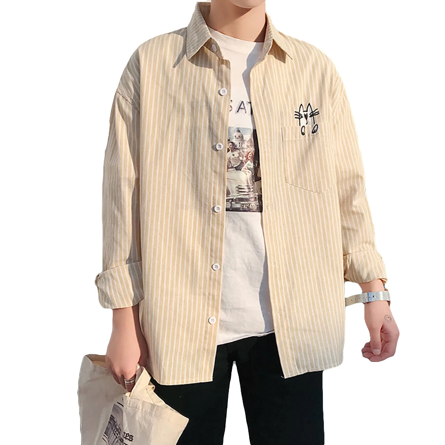 Oversized Striped Shirt Men Cotton Long Sleeve Korean Fashion Mens Casual Shirts Vestido Listrado Blouse Streetwear C7005 Men Casual Shirt Striped Shirt Menfashion Shirt Men Aliexpress